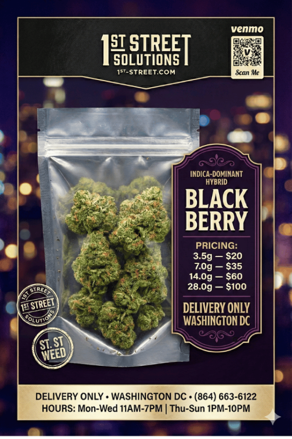 Tags: Affordable Ounces, Berry Flavor, Black Berry Strain, Blackberry Kush, Buy Weed DC, cannabis delivery DC, DC Weed Delivery, Exotic Genetix, Exotic Weed, Gas Terpenes, Indica-dominant Hybrid, Initiative 71 Compliant, Potent Indica, Purple Cannabis, Relaxing High, Same Day Weed Delivery, Sleep Aid, Top Shelf Flower, Washington DC cannabis