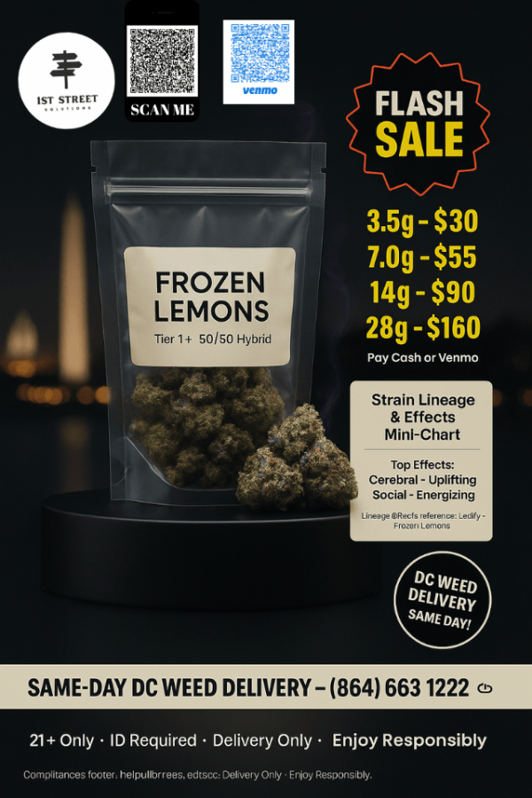 Tags: 1st Street Solutions, 50/50 Hybrid, citrus strain, DC Weed Delivery, frozen lemons, Premium Flower, same day delivery, Tier 1