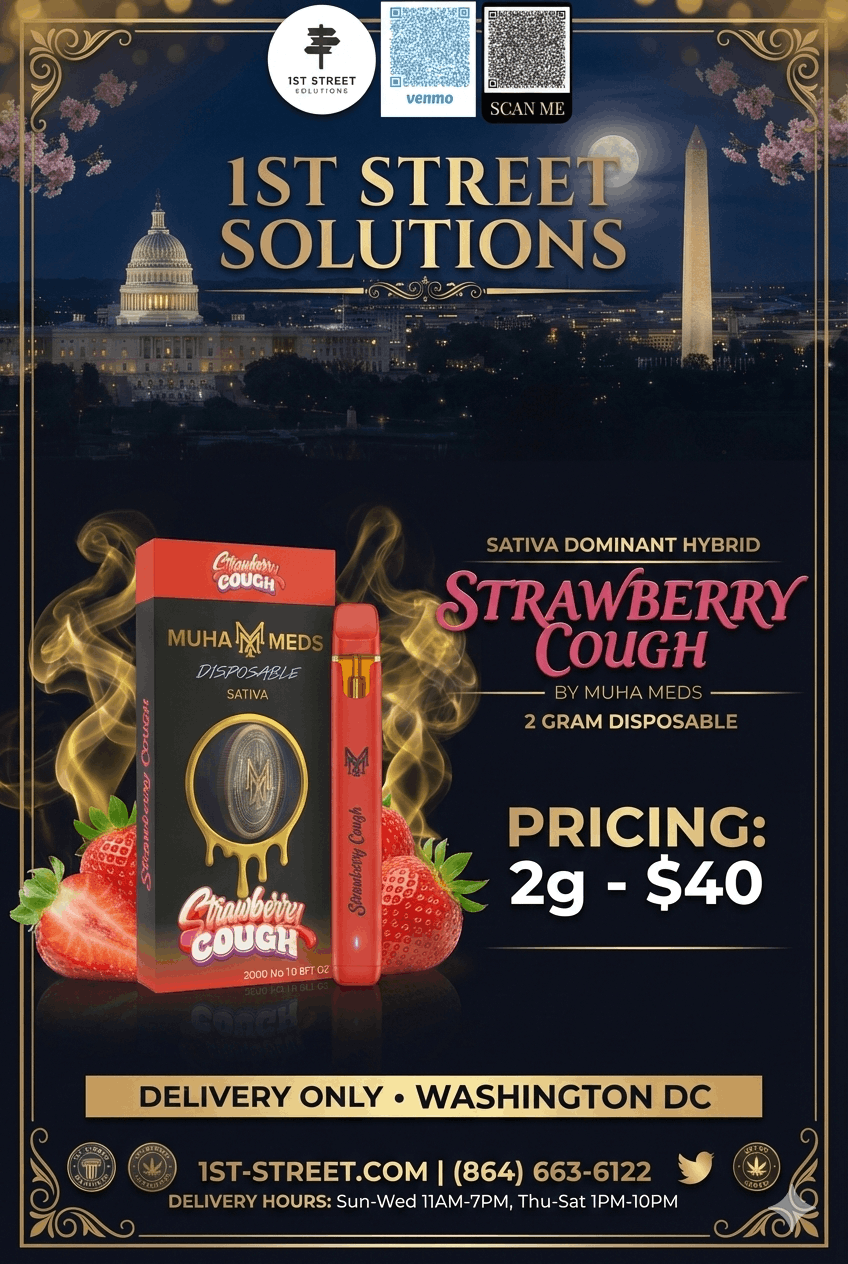 Experience a burst of sweet berry flavor and relentless cerebral energy with the Muha Meds Strawberry Cough 2g Disposable. This high-capacity Sativa-dominant vape is perfect for daytime productivity and social vibes. Order now for the fastest DC weed delivery service right to your door.