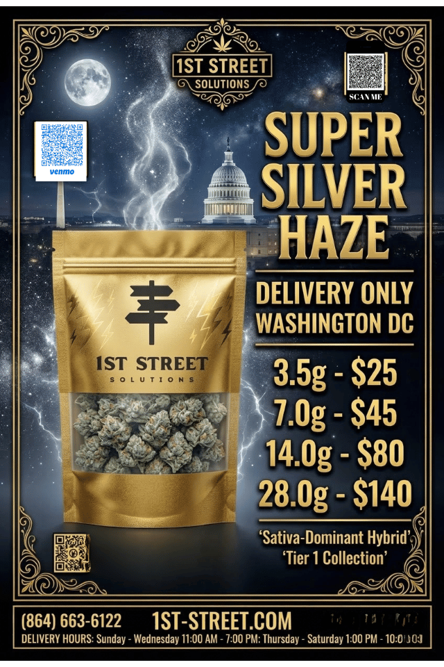 Tags: 1st Street Tier 1, DC Weed Delivery, I-71 delivery, Sativa-dominant, Super Silver Haze, uplifting cannabis, Washington DC weed